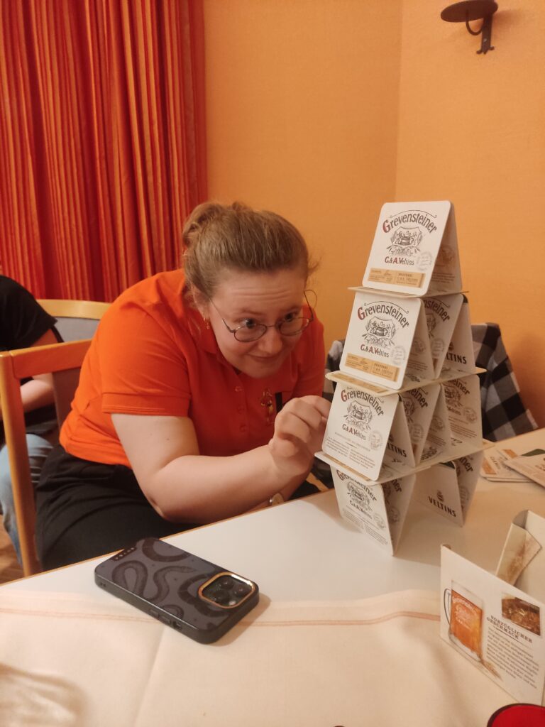 Der nächste Tag begann dreigeteilt, indem die Teilnehmenden zwischen den Workshops „Stärkung der eigenen Psyche“, „Tipps der Polizeidirektion Duderstadt zu Gefahren im Alltag“ und „Meditation in Wald und Natur“ auswählen konnten. Nach der Mittagspause, die ganz individuell genutzt wurde, warteten ebenfalls drei parallel stattfindende Angebote. Hierzu zählten ein Gesellschaftsspiele-Nachmittag und die Besichtigung der Brauerei „Neunspringe“. Zudem konnte beim Adventsbasteln weihnachtlicher Wohnzimmer-Schmuck angefertigt werden.